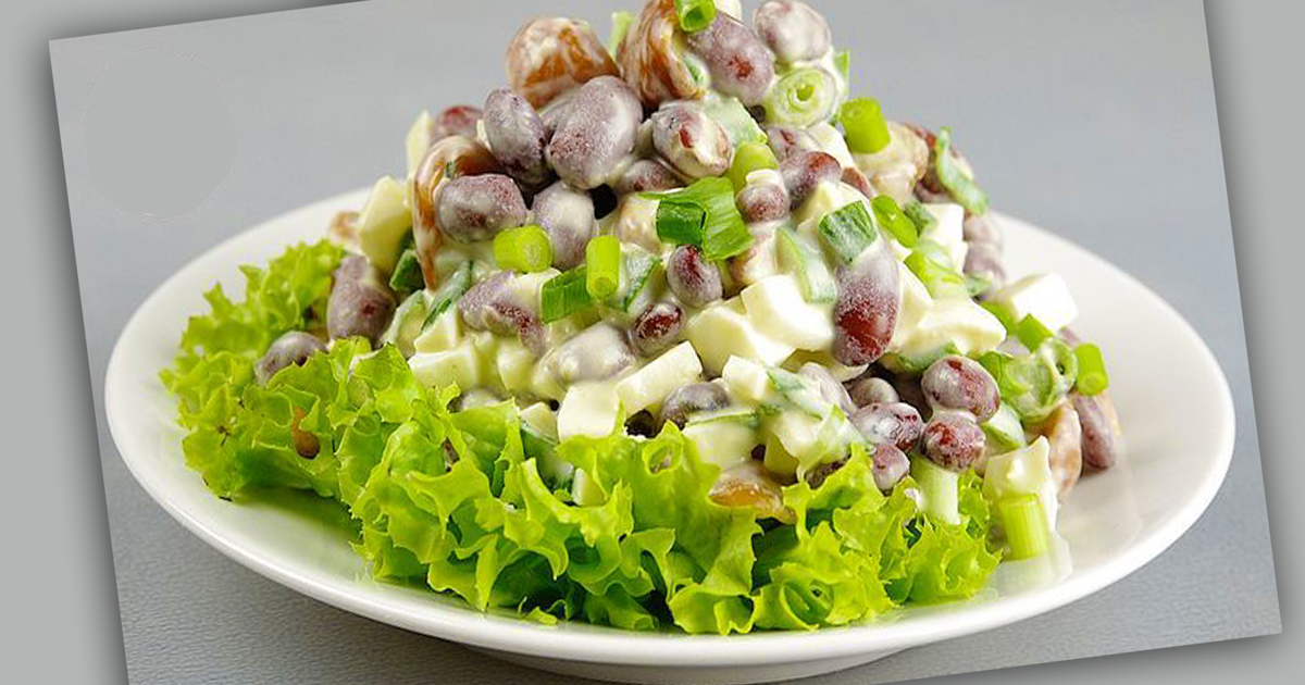 5. В салатнике соединить фасоль, лук и яйца.