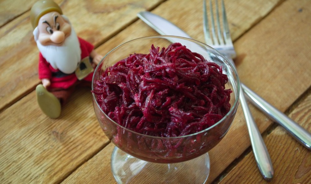 Натертой на крупной терке сырой свеклы, да побольше,