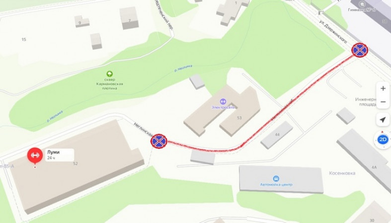 Запрет действует на участке автодороги Неглинской набережной, от улицы Дзержинского до здания спорткомплекса «Луми» (это Неглинская набережная, 52).