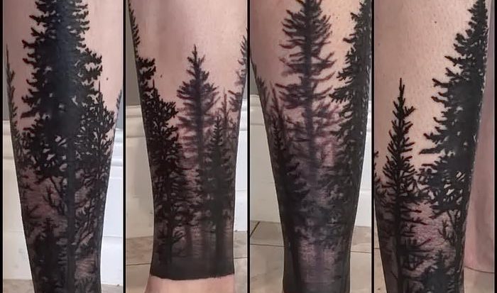 Пейзажи, которые наносят в виде тату, очень популярны сегодня. Особым спросом пользуется лесной пейзаж. Из-за своей масштабности лес обычно размещается на груди или спине, однако встречаются умельцы, которые наносят изображение на руку или ногу.