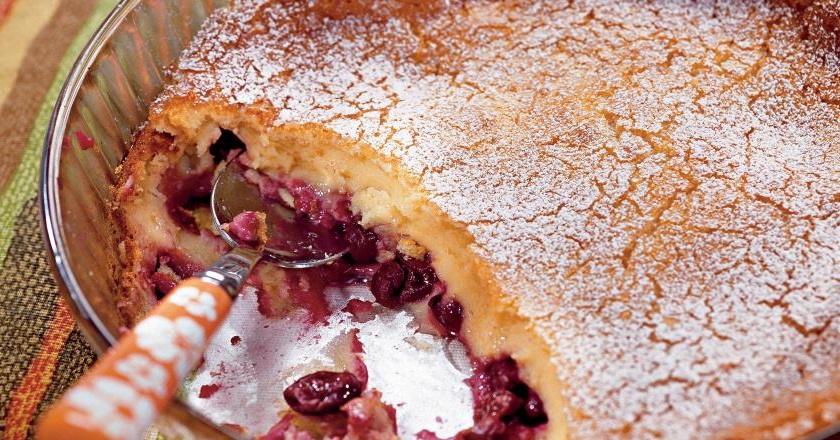 - Отправьте клафути в разогретую до 180 градусов духовку (не более, чем на 40 минут). Готовность пирога можно проверить зубочисткой. Как отключите духовку, дайте десерту еще 20–25 минут постоять внутри, чтобы он не опустился.