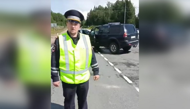 На месте аварии работают инспекторы ДПС, они устанавливают обстоятельства инцидента. // фото, видео: ГИБДД Карелии