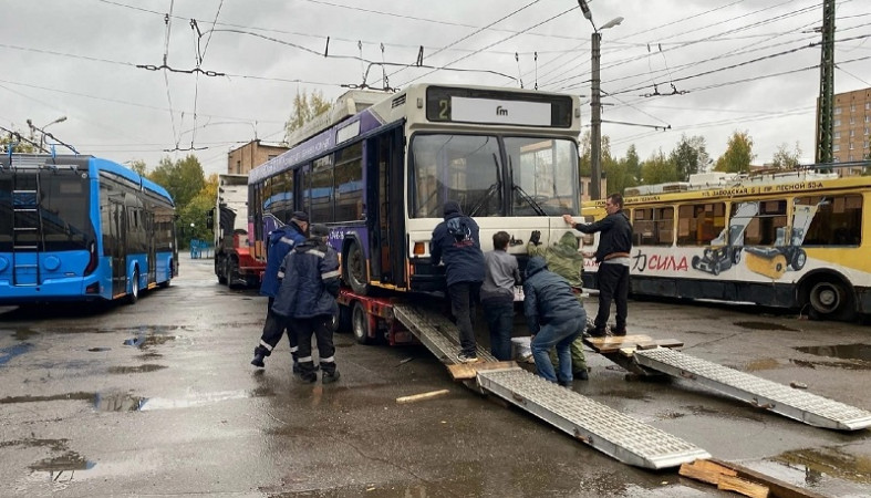 Напомним, на днях в Петрозаводск прибыли пять новых троллейбусов, произведенных в Белоруссии. Они готовятся к выходу на городские маршруты. Фото паблика «Все о транспорте Питера»
