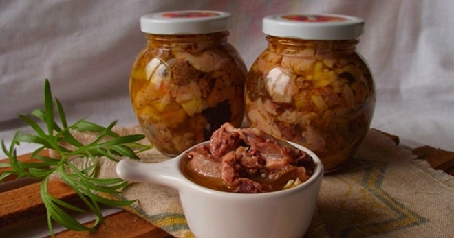 Тушенка из свиной головы является финансово доступным вариантом для получения вкусной мясной консервации. Приобретать такую часть туши очень выгодно. Мяса много, по вкусовым качествам оно ничуть не хуже дорогих сортов, а стоимость намного дешевле. Незамысловат и рецепт: мясо тушится 4 часа, раскладывается по банкам и стерилизуется.