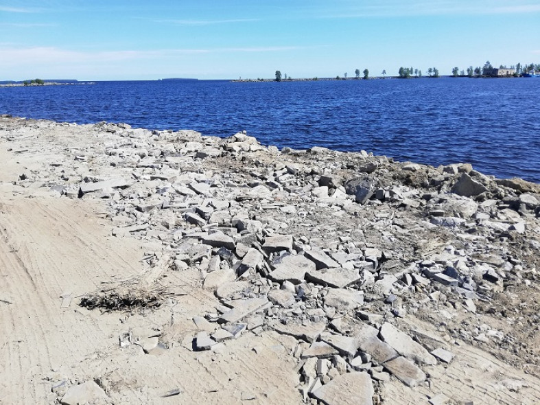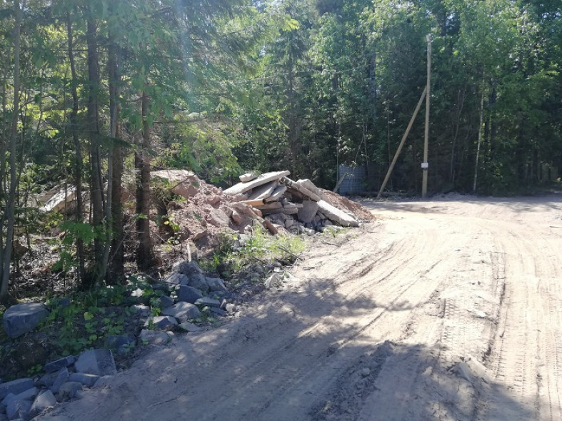 В мае в паблике «Отражение. Карелия» сообщалось о навалах строительных отходов и отходов камнеобработки, демонтированном твердом покрытии дороги и навалах из кусков бетона и мусора вдоль дороги на границе лесного фонда. Арендатор участка говорил, что ведется ремонт дороги и мола для создания яхт-клуба. По сообщению паблика, по факту размещения отходов камнеобработки был привлечен к административной ответственности, ему был выписан штраф. // фото «RuNews»