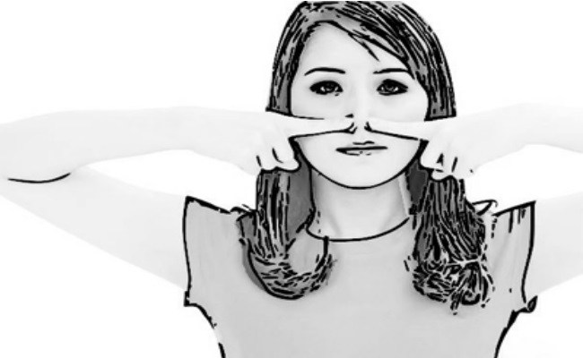 Средние пальцы рук кладутся на крыльевые впадины (углубления). Далее следует наморщить нос и рефлекторно расправить крылья. Пальцы рук создают сопротивление и прижимают крылья обратно к центру. За каждый повтор нужно отпускать и снова прижимать нос пальцами около 5-6 раз. Во время выполнения нос расслаблять нельзя. Примерно 10 повторов будет достаточно для выполнения упражнения.