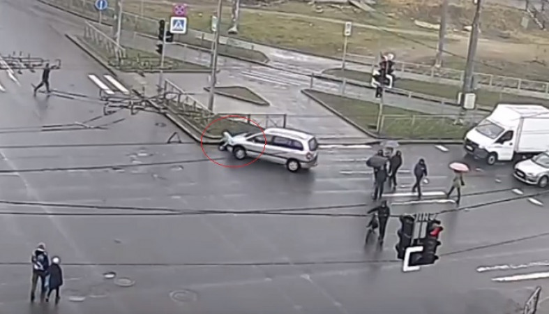 Инцидент попал на видео. После аварии женщине помогли подняться очевидцы, она покинула перекресток самостоятельно.