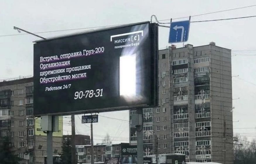 В Ижевске на рекламных щитах начали рекламировать круглосуточную доставку груза 200. У жителей города баннер вызвал возмущение.
