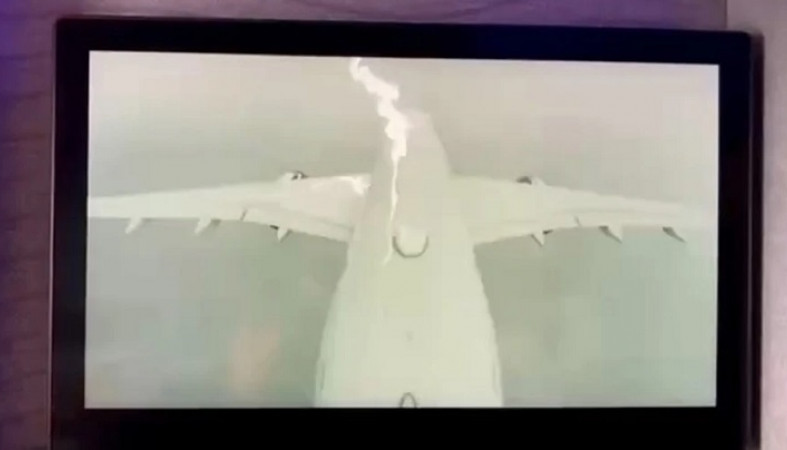 Пассажир лайнера снял на видео, как борт поразил удар молнии