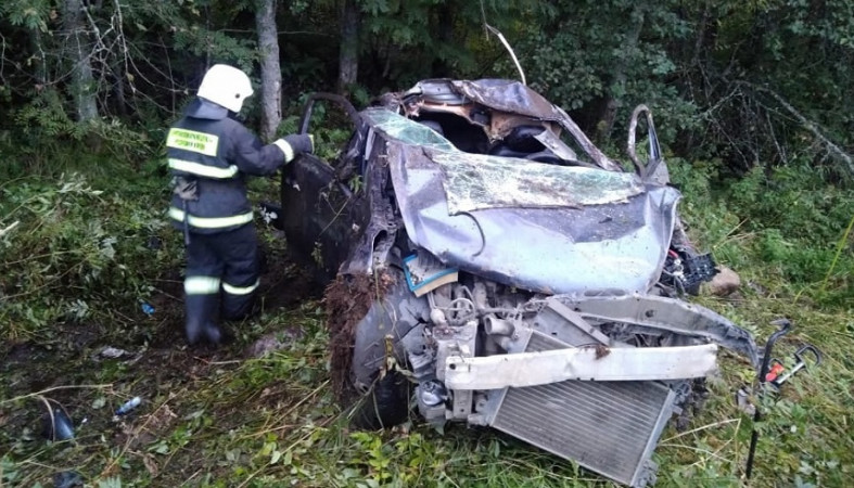 «Машина съехала с дороги в кювет, врезалась в дерево и опрокинулась. На место ДТП выезжали двое спасателей ПЧ-49 по охране села Ведлозеро, которые осмотрели место аварии и высвободили пострадавших»,