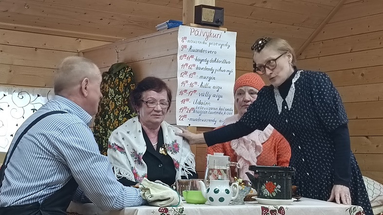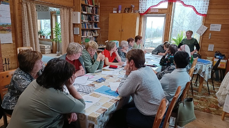 На курсы карельского языка сейчас приходят 16 человек в возрасте 60+. Самой старшей из них Анне Петровне Ивановой 90 лет. Невероятно, но зимой она самостоятельно приезжает на финских санях (с длинными полозьями и стульчиком), в другое время приходит с палками для скандинавской ходьбы.