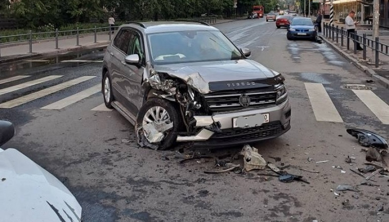 На перекрестке столкнулись автомобили «Фольксваген Тигуан» и «Рено Флюенс». По сообщению дорожной полиции, 60-летний водитель «Фольксвагена» при повороте налево не уступил дорогу двигавшемуся прямо «Рено».