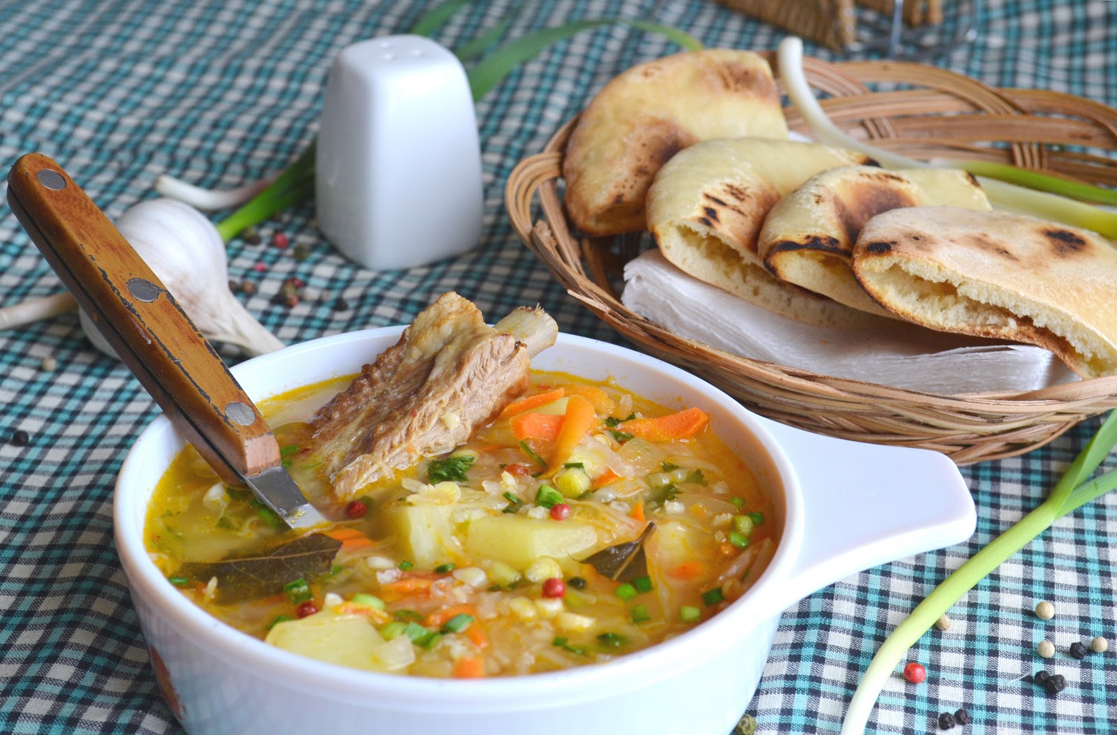 Последними нужно добавить квашенную капусту, картофель, мясной или куриный бульон (этот суп допускает оба варианта), паприку, соль, лавровый лист. Сначала доводим до кипения, затем накрываем крышкой и еще 15 варим снова на слабом огне.