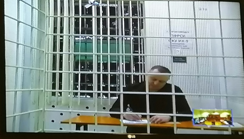 Сам Геннадий Боднарчук участвует в заседаниях по видеосвязи. Для человека, отбывающего наказание в колонии строго режима, выглядит неплохо. Рассмотрение дела Боднарчука продлится до конца недели. // Фото «RuNews»