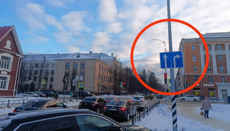 Автомобилистам напомнили, что перед перекрестком есть знак, указывающий направление движения по полосам. На него надо ориентироваться, чтобы увидеть количество полос и разрешенные направления.