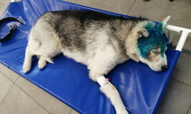 Сегодня состояние здоровья собаки оценивается как стабильно тяжелое. Врачи и новая хозяйка борются за его жизнь.// Фото: Айно Матякова