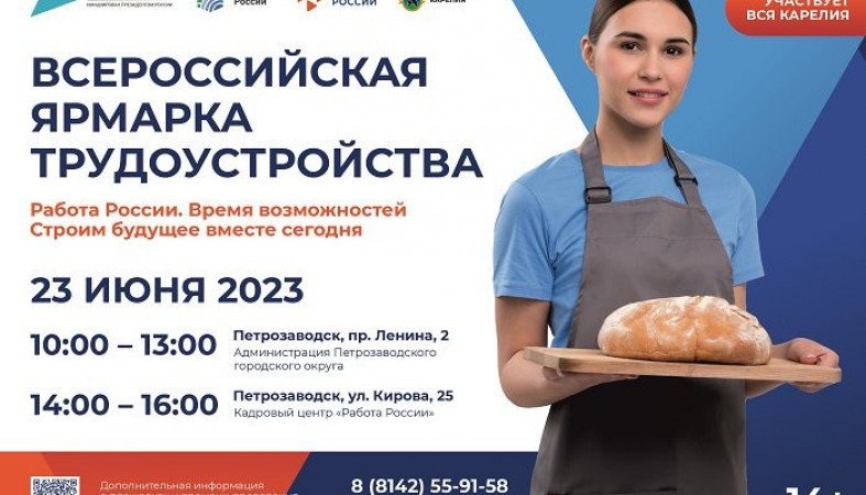 В пятницу, 23 июня, в Карелии пройдет Всероссийская ярмарка вакансий «Работа России. Время возможностей». Об этом сообщили в региональном Управлении труда и занятости.