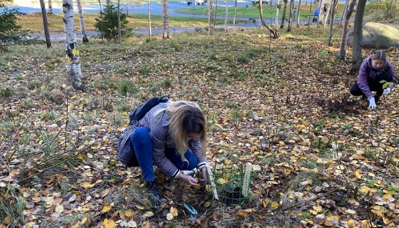 Семь дубков 13 октября высадили на Древлянке, в Олимпийском сквере. Также студенты Петрозаводского лесотехнического техникума посадили там две молодые яблони.
