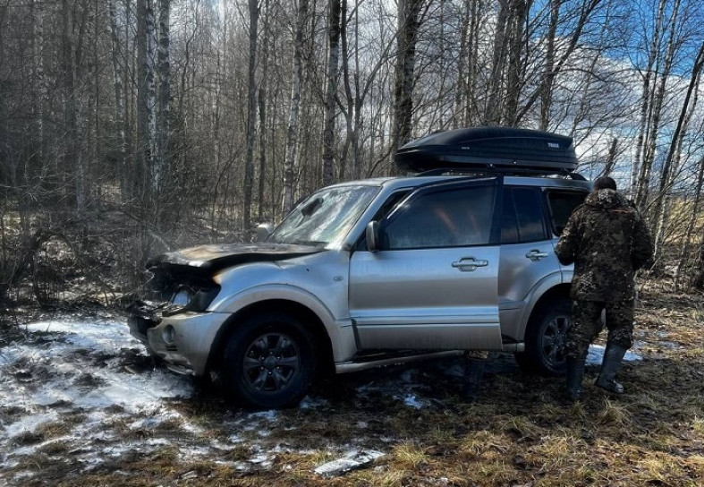 В Пряжинском районе на автодороге Эссойла-Киндасово вспыхнул внедорожник «Митсубиши Паджеро».