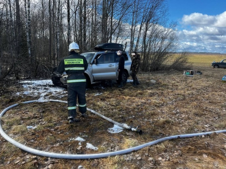 Карельские спасатели справились с возгоранием в японском автомобиле к 11:30. // фото группы «ГКУ РК «ОПС по Пряжинскому району»