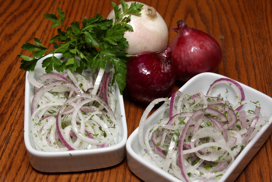 Для его приготовления нам понадобится только лук, уксус и растительное масло.