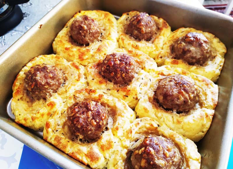 Картофельные шарики выложить на противень, тоже смазанный растительным маслом. Из указанного количества продуктов получается 8 шариков. Если продуктов используется меньше или противень слишком большой, то можно использовать просторную форму для запекания из любого материала.