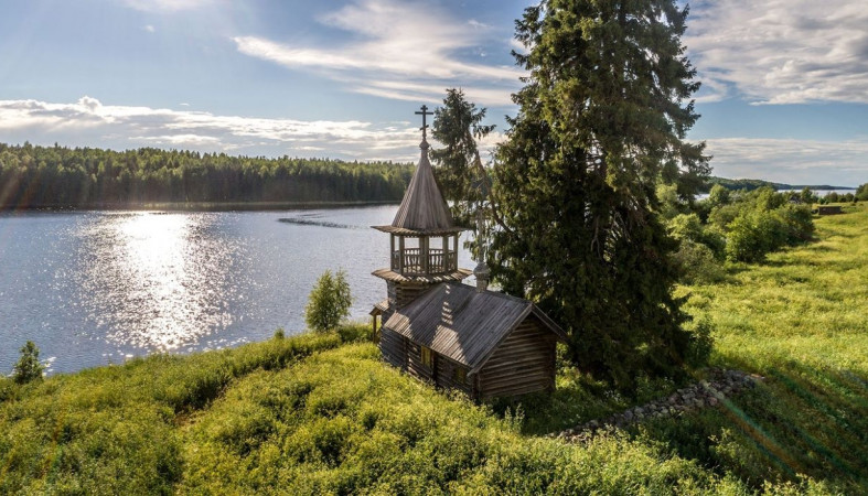 Часовня находится на берегу Космозера в Медвежьегорском районе