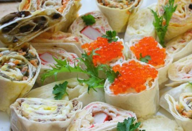 Идеальный набор закусок к столу сделаем из обычного лаваша. Немного добавок и вот уже гости разбирают такие закуски быстрее, чем главное блюдо.