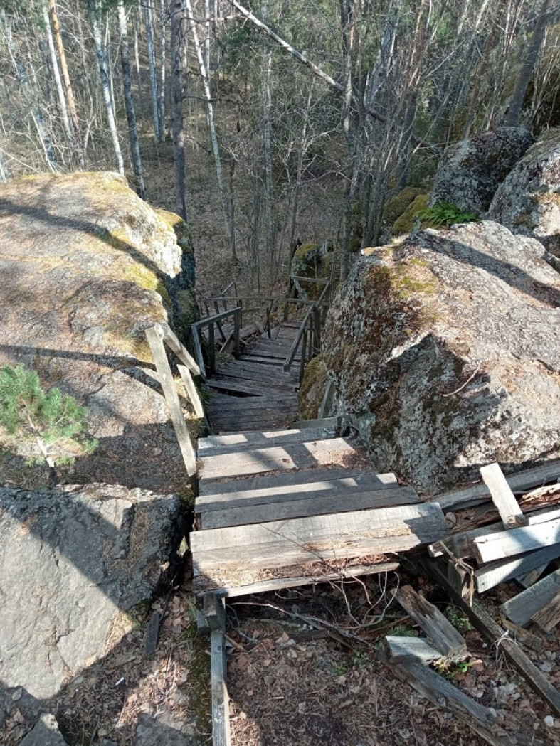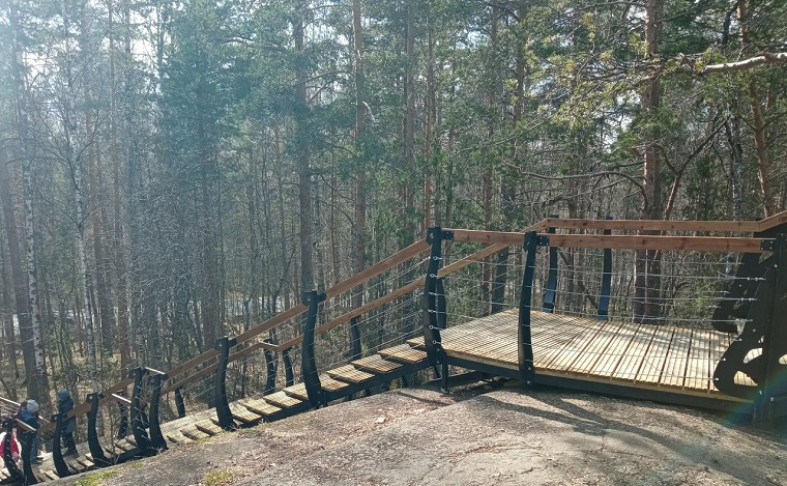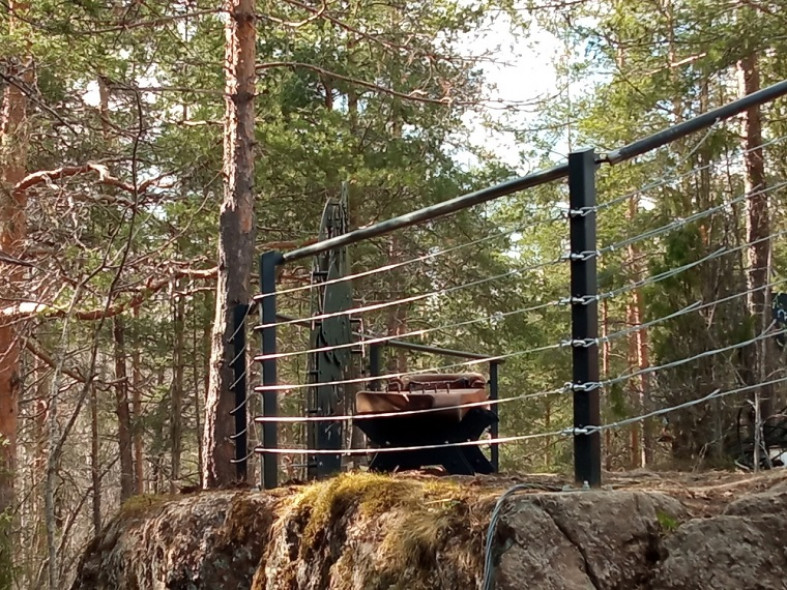 Верхнюю пологую часть скалы, где можно насладиться видом, огородили. Здесь установили скульптуры, большое кантеле, на котором можно поиграть.