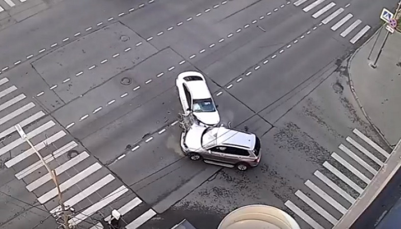 Все произошло в тот момент, когда один из водителей совершал левый поворот, а другой двигался прямо. Камера уличного наблюдения CityLink запечатлела момент столкновения.